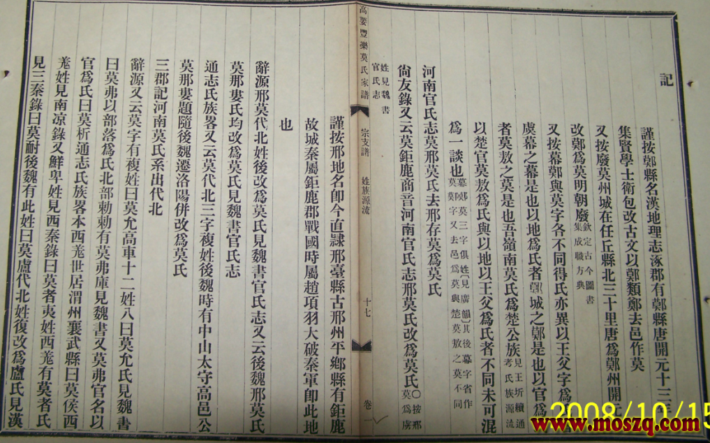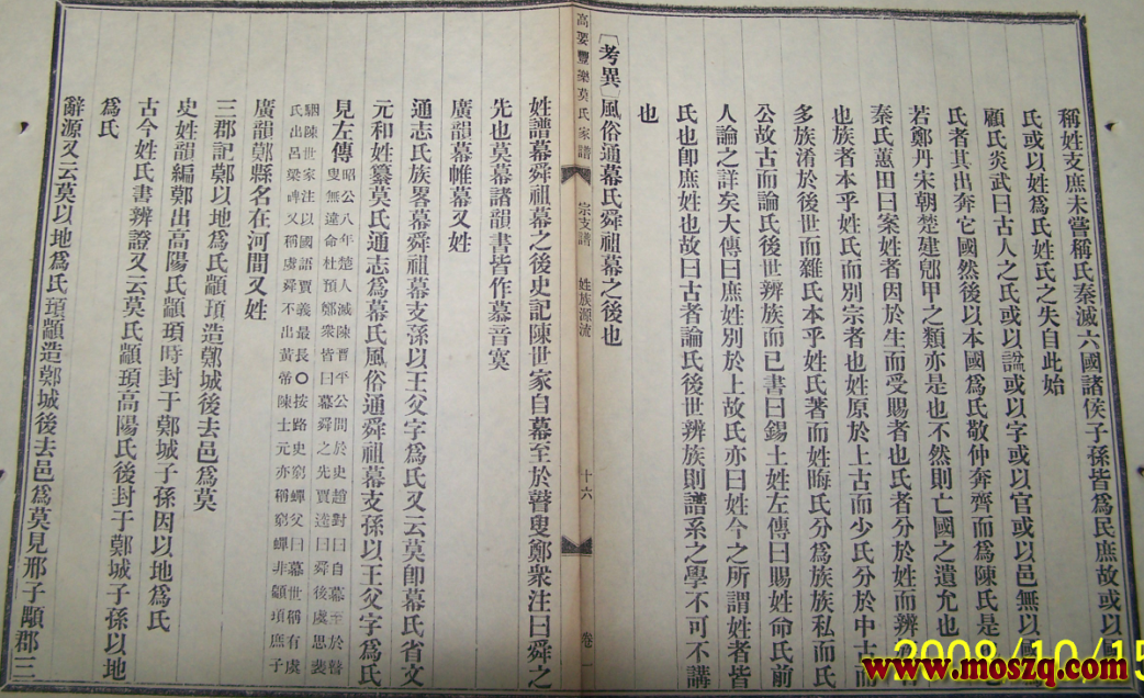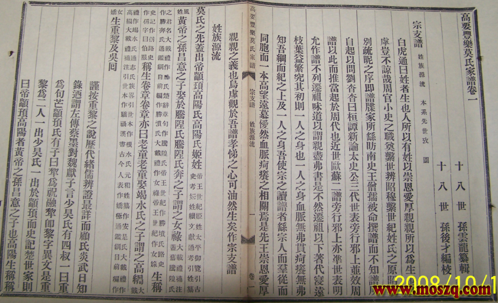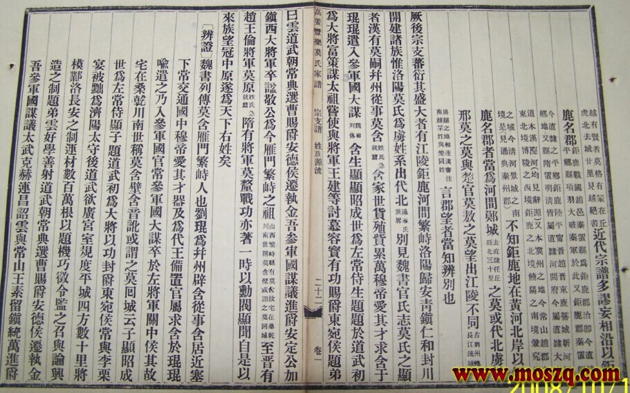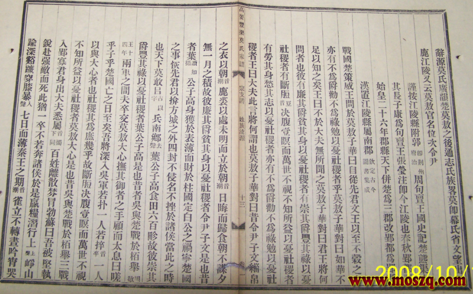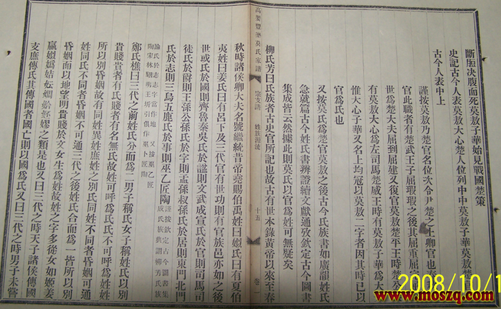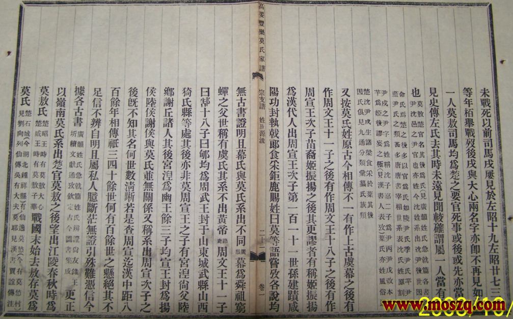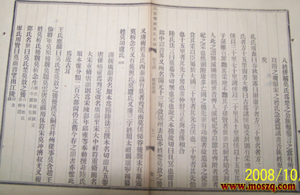 族谱方面,对楚莫敖一支论述最详尽的当属《民国高要丰乐围谱》。该谱以一卷的篇幅叙说莫氏流源,并在谱后罗列其他族谱谱序。部分摘抄如附图。